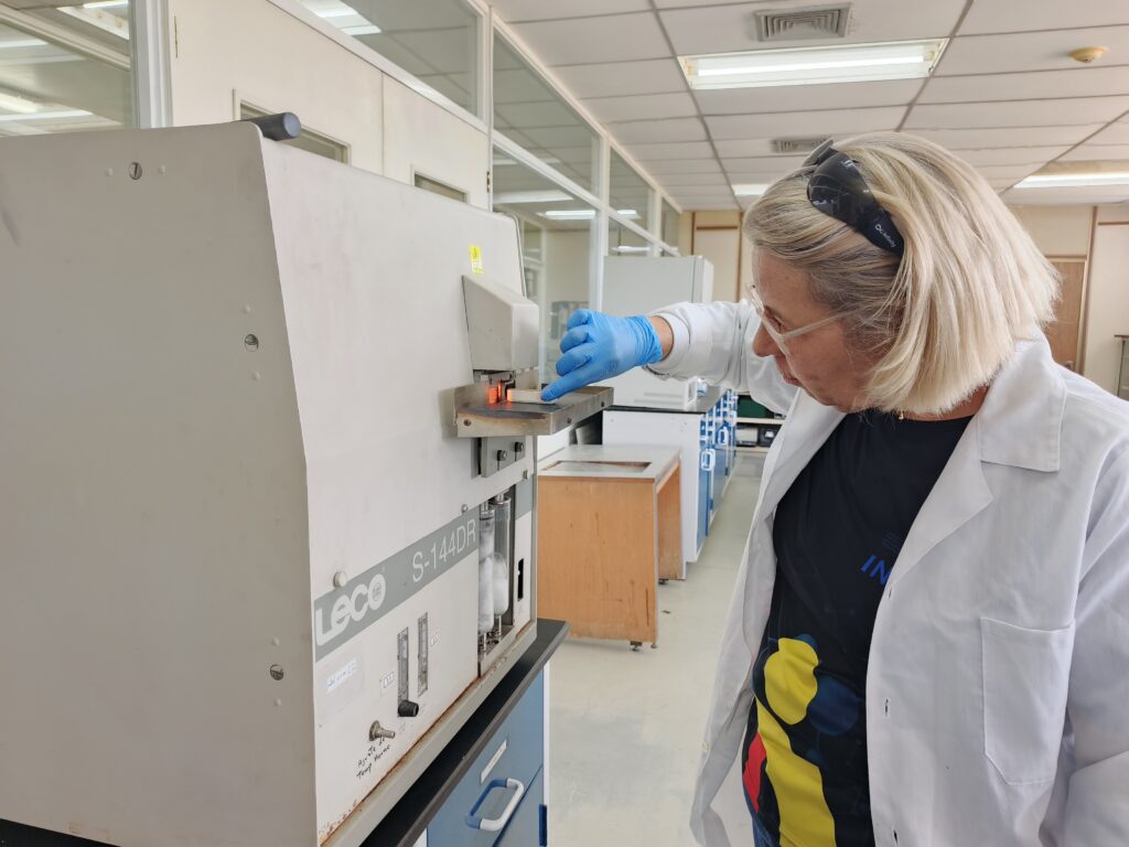 Entre los trabajadores se encuentra la ingeniera química Sheila Contreras, quien explicó el procedimiento y la relevancia de la determinación de azufre en muestras orgánicas, donde se utiliza un analizador LECO para determinar el principio de combustión y del infrarrojo.