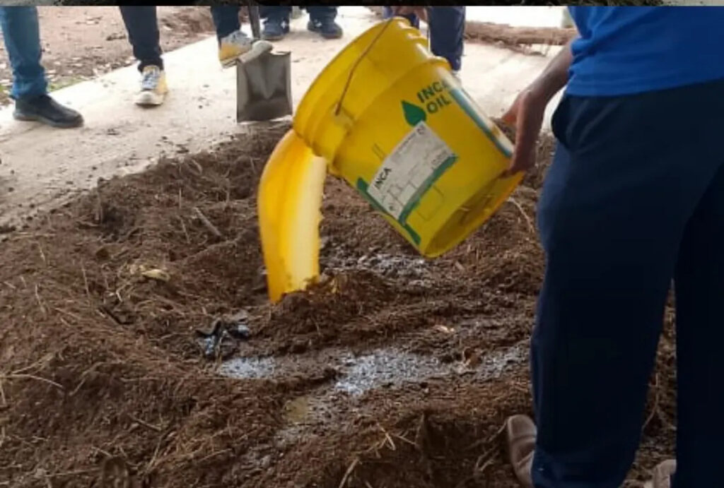 El taller teórico-práctico no solo permitió la preparación de este abono sólido, rico en nutrientes y microorganismos benéficos, sino que también incluyó la primera de tres cosechas de microorganismos eficientes en fase líquida.