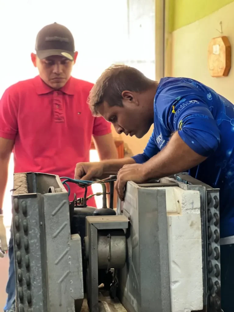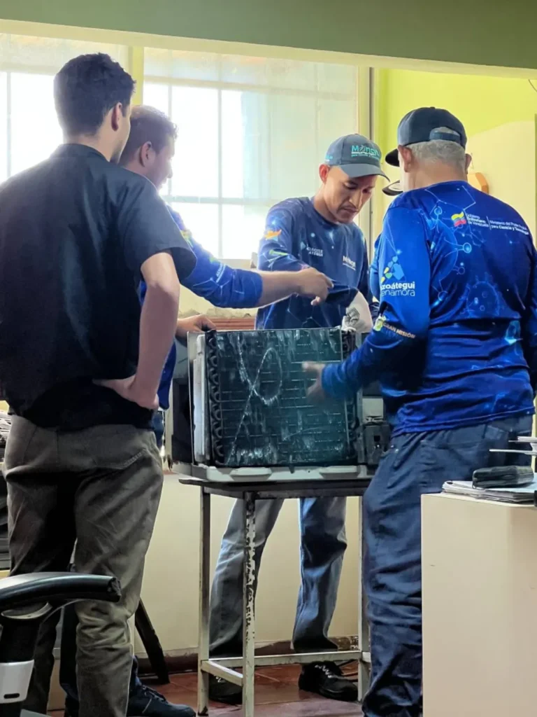 La acción interinstitucional permitió la recuperación y el mantenimiento preventivo y correctivo de ocho unidades de aires acondicionados para garantizar y estabilizar el sistema de climatización en oficinas y espacios de atención, donde el control de temperatura es esencial para el resguardo de equipos informáticos y el bienestar del personal.
