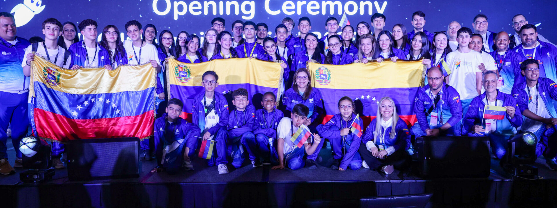La delegación venezolana, integrada por niños, niñas y jóvenes del Programa Nacional Semilleros Científicos y encabezada por la viceministra para la Comunalización de la Ciencia para la Producción del Ministerio del Poder Popular para Ciencia y Tecnología, Danmarys Hernández, compite en las cuatro categorías oficiales del evento: RoboSports, Misiones Robóticas (en sus niveles Elementary, Junior y Senior), Futuros Ingenieros y Futuros Innovadores.