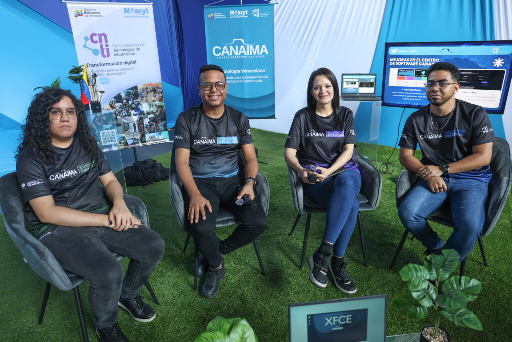 (Caracas, 16 de octubre de 2025).- En la Plaza de los Pueblo y los Saberes, ubicada en la torre del Ministerio del Poder Popular para Ciencia y Tecnología (Mincyt), el equipo de desarrolladores del sistema Canaima GNU/ Linux realizó una actividad enfocada en socializar con la población venezolana los avances y aportes del software libre y las tecnologías de comunicación y la información en el país.