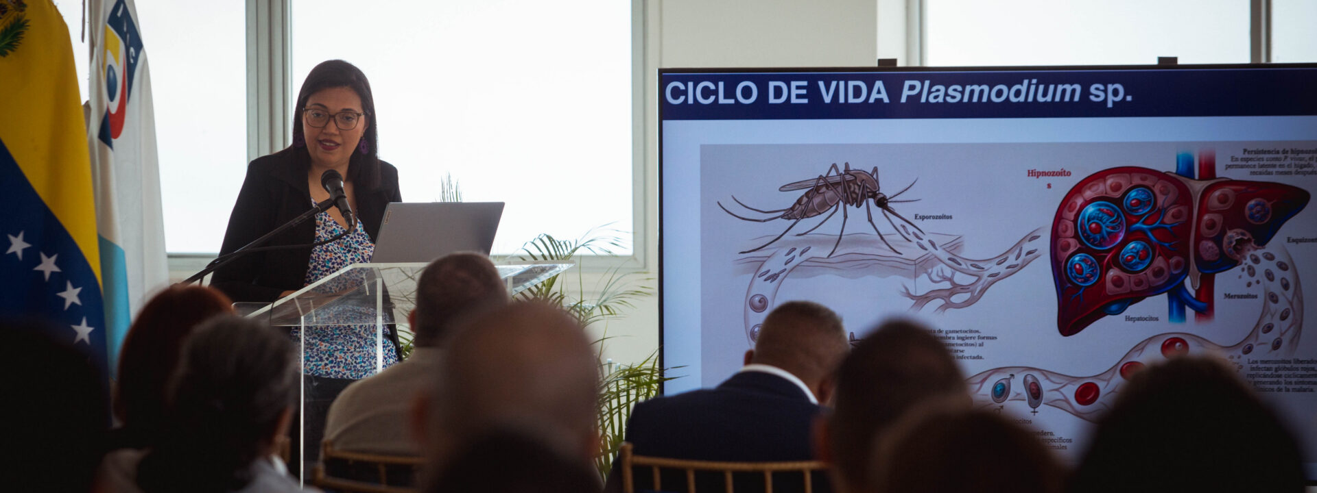 Durante su ponencia la Dra. Hidalgo explicó a los asistentes que la malaria es una enfermedad parasitaria, causada por cinco especies del género plasmodium.