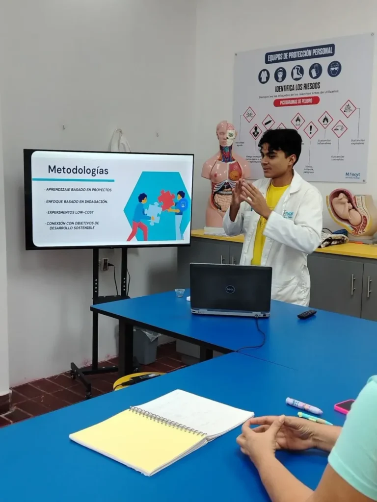 Esta formación se enfocó en la aplicación de STEAM en el ámbito de la química, proporcionando a los educadores herramientas para conectar la teoría con la práctica a través de demostraciones experimentales.
