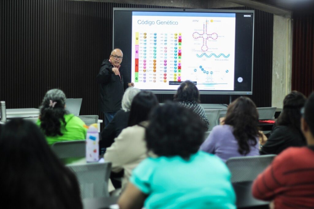 La tecnología de proteínas recombinantes permite «instruir» a microorganismos para producir moléculas específicas que no existen fácilmente en la naturaleza. El Dr. Rosales destacó el desarrollo de librerías de nanoanticuerpos: estructuras minúsculas pero poderosas, con capacidad para identificar blancos específicos con precisión quirúrgica.