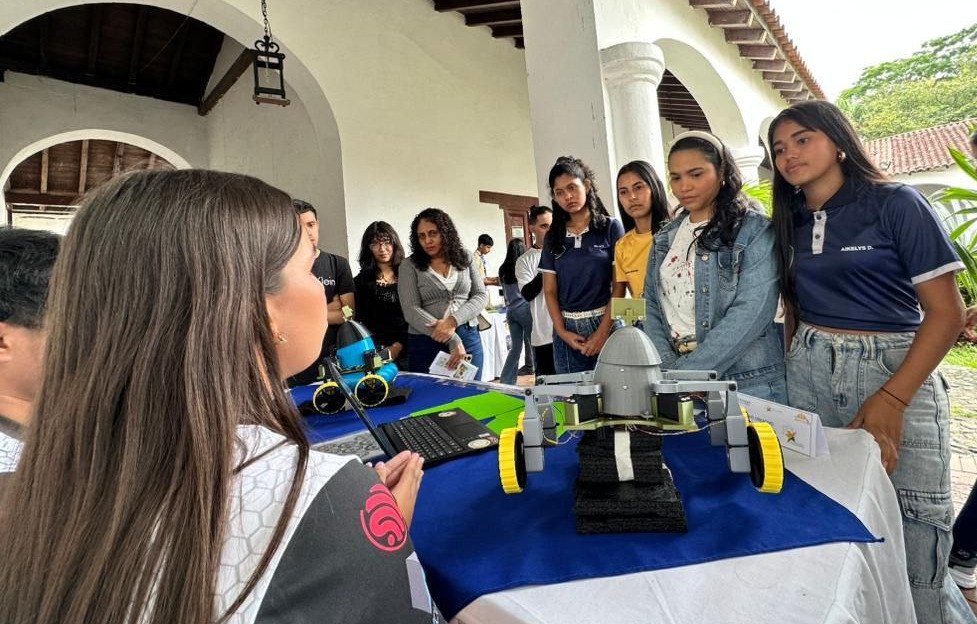 Durante el recorrido por los diferentes stands, los estudiantes universitarios conocieron de cerca los proyectos competidores en las categorías de Ingenio Creativo y Sigue Líneas, iniciativas que forman parte del Programa Nacional Semilleros Científicos.