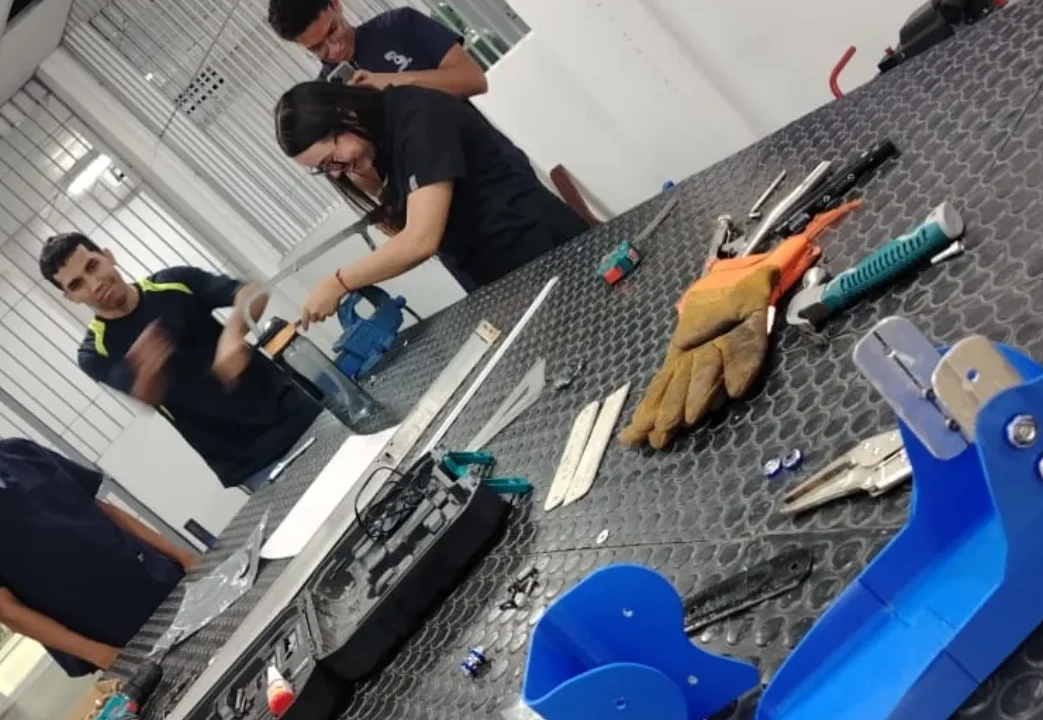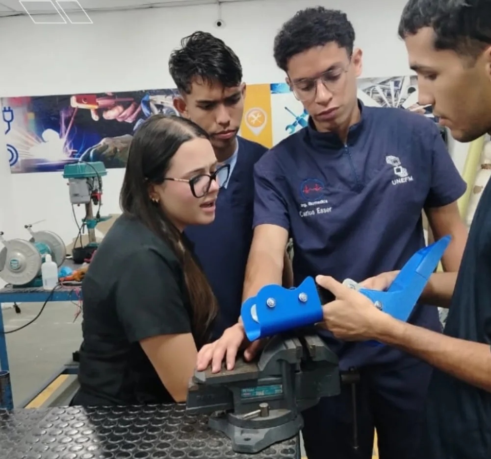 Por su parte, la estudiante Junielys Pereira explicó que este mecanismo utiliza un gato hidráulico y un arnés especializado para garantizar la estabilidad y mejorar la calidad de vida de personas con movilidad reducida.