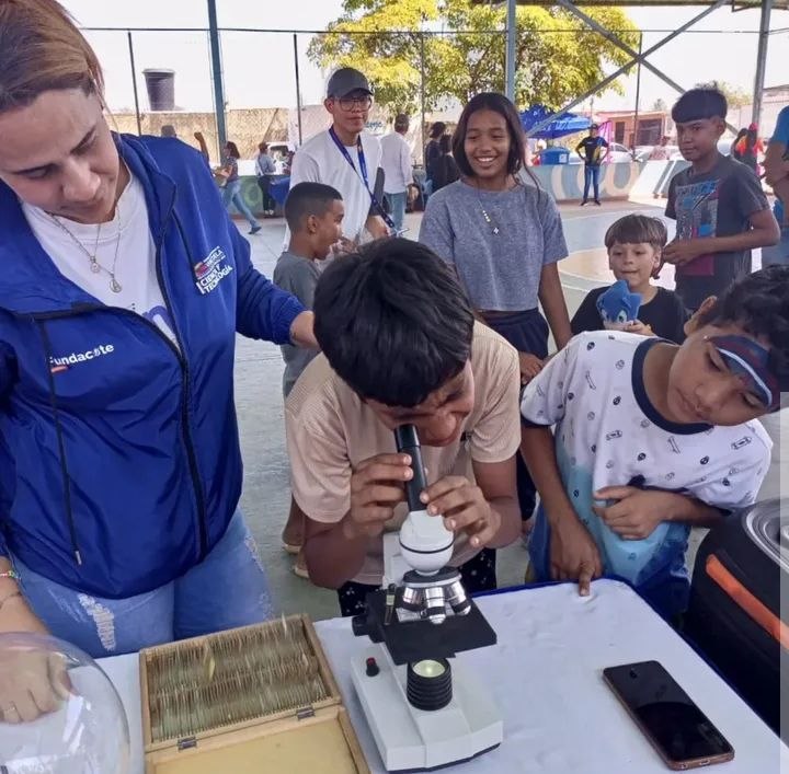 El operativo inició en la Comuna Bahía de Barcelona (municipio Simón Bolívar), donde niñas y niños participaron en experiencias de microscopía.