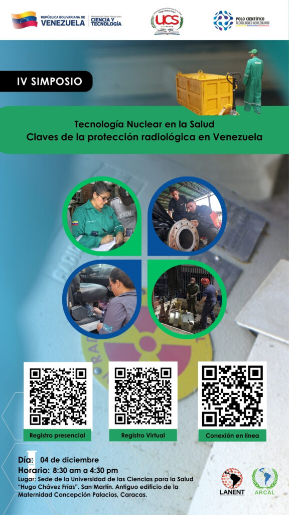 El Ministerio del Poder Popular para Ciencia y Tecnología, a través del Polo Científico Tecnológico Venezolano, la Red Latinoamericana para la Educación y la Capacitación en Tecnología Nuclear (Lanent) y el Acuerdo Regional de Cooperación para la Promoción de la Ciencia y la Tecnología Nucleares en América Latina y el Caribe (Arcal), extienden la invitación a todas y todos los estudiantes y profesionales vinculados a estas tecnologías a participar en el IV simposio.