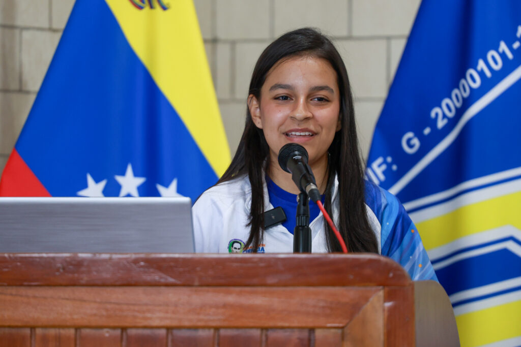 Angelina Ferrer, integrante de la delegación de Venezuela que conquistó el primer lugar en la categoría Futuros Innovadores Senior durante la Olimpiada Mundial de Robótica 2024, celebrada en Türkiye, también compartió con el público presente apreciaciones sobre lo que significa ser una joven investigadora.