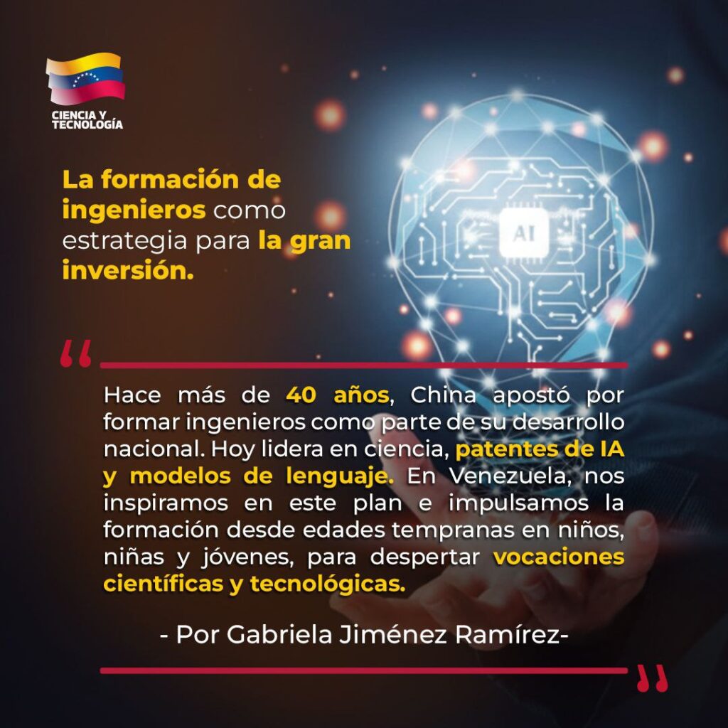 En Venezuela, aliada estratégica de China, se inspira en este plan y hemos promovido la política de formación desde edades tempranas, con el fin despertar el interés en áreas científicas.
