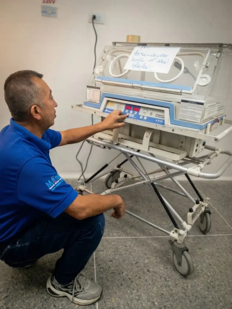 Además, realizaron un diagnóstico técnico exhaustivo en un ecógrafo, un equipo de rayos X portátil y una centrífuga, con intervenciones directas en áreas críticas como Laboratorio, Banco de Sangre, Radiología y Unidad Neonatal.
