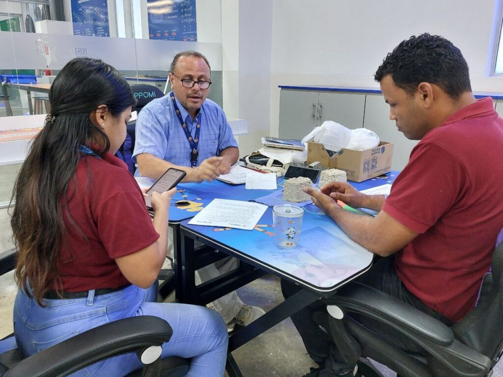 Durante la jornada, los científicos locales profundizaron en el diseño de bloques sostenibles y el manejo de maquinaria avanzada para la fabricación de mezclas alternativas al cemento.