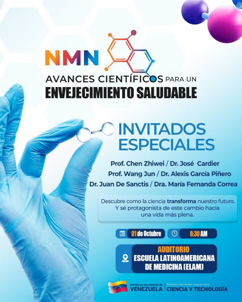 (Caracas, 30 de septiembre de 2025).- La ministra para Ciencia y Tecnología, Gabriela Jiménez Ramírez, invitó a la conferencia NMN: Avances científicos para un envejecimiento saludable, que se celebrará el 1 de octubre.