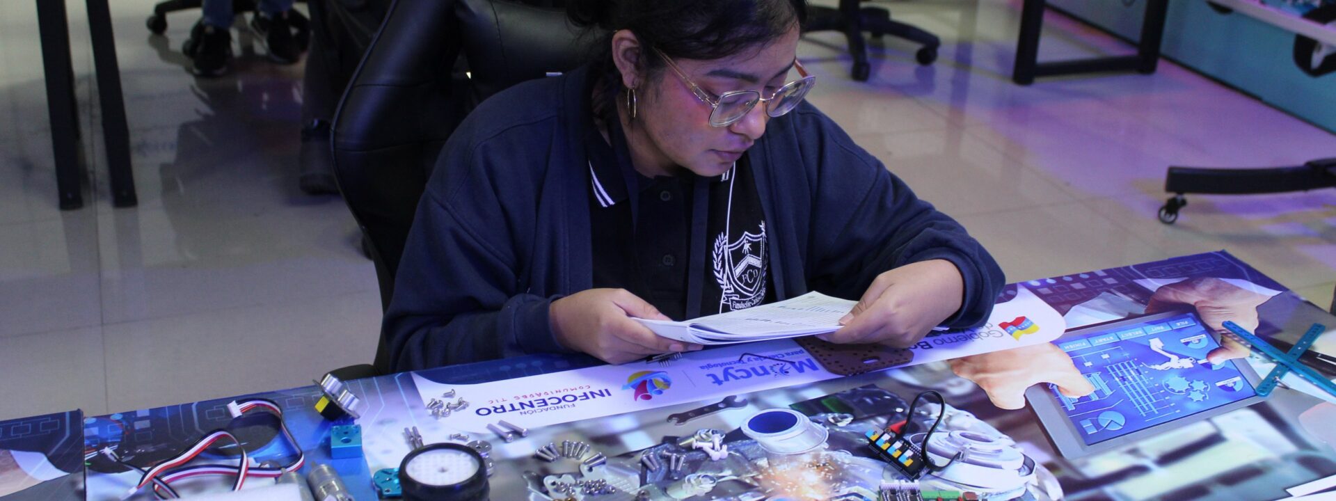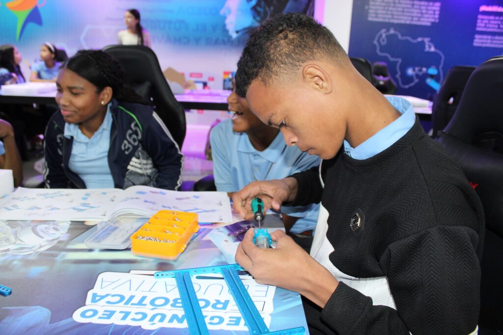 La jornada contó con la guía de las facilitadoras Juliet Chávez y Gladiannes Méndez, quienes acompañaron paso a paso a los estudiantes en el proceso de ensamblaje y programación, fomentando el trabajo en equipo y el pensamiento crítico. Su labor fue fundamental para transmitir los conocimientos técnicos de una manera sencilla y motivadora, inspirando a los participantes a verse a sí mismos como creadores de tecnología.