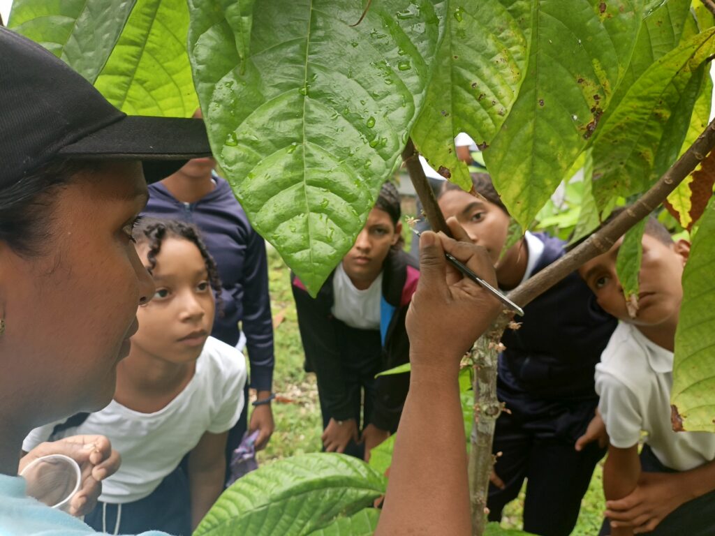 La actividad, impulsada por el Programa Nacional Semilleros Científicos, permitió a los jóvenes conocer los procesos sobre el manejo agronómico que se desarrollan en la institución para potenciar el rubro estratégico del cacao en la región barloventeña.