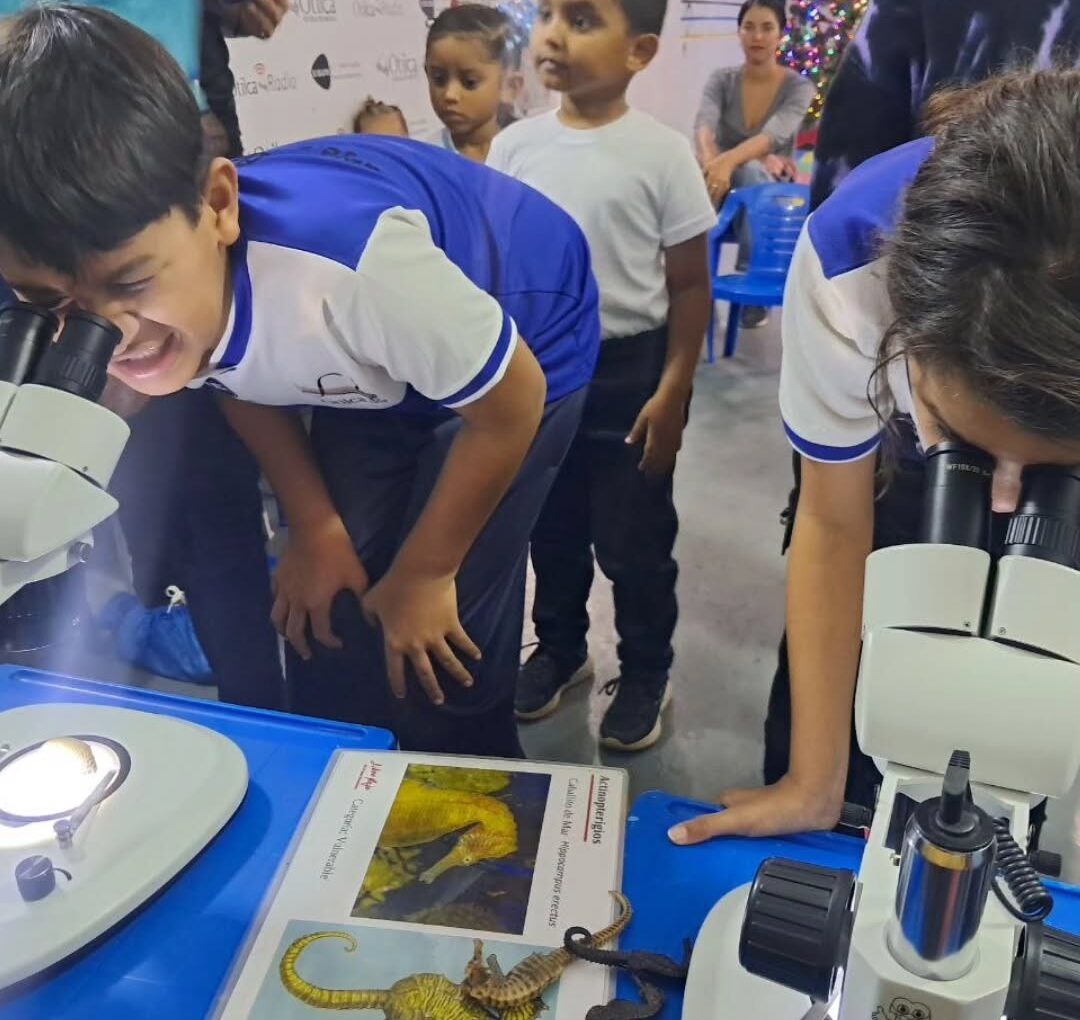 En el ámbito marino, aprendieron sobre invertebrados como los cnidarios y moluscos, teniendo la oportunidad de observar pólipos de corales bajo una lupa estereoscópica.