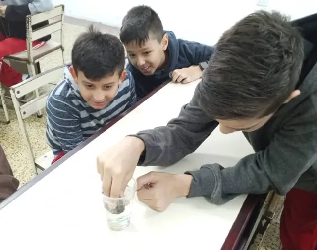 Durante la actividad, los estudiantes realizaron experimentos prácticos con imanes y limadura de hierro, despertando asombro y entusiasmo por la ciencia.