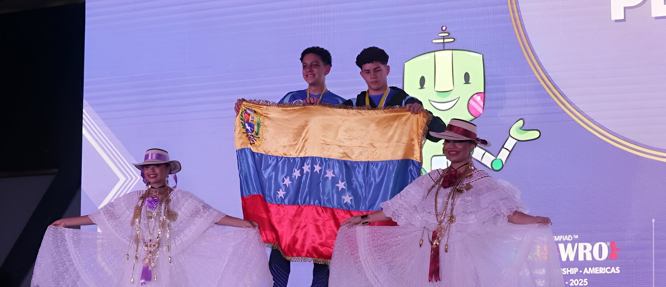 El equipo venezolano, conformada por los jóvenes Audie Gabriel Ariza Duque y Juan Miguel Correira Ávila, se alzó con la medalla de plata en la WRO Open Championship Américas 2025, competencia abierta celebrada en Panamá.