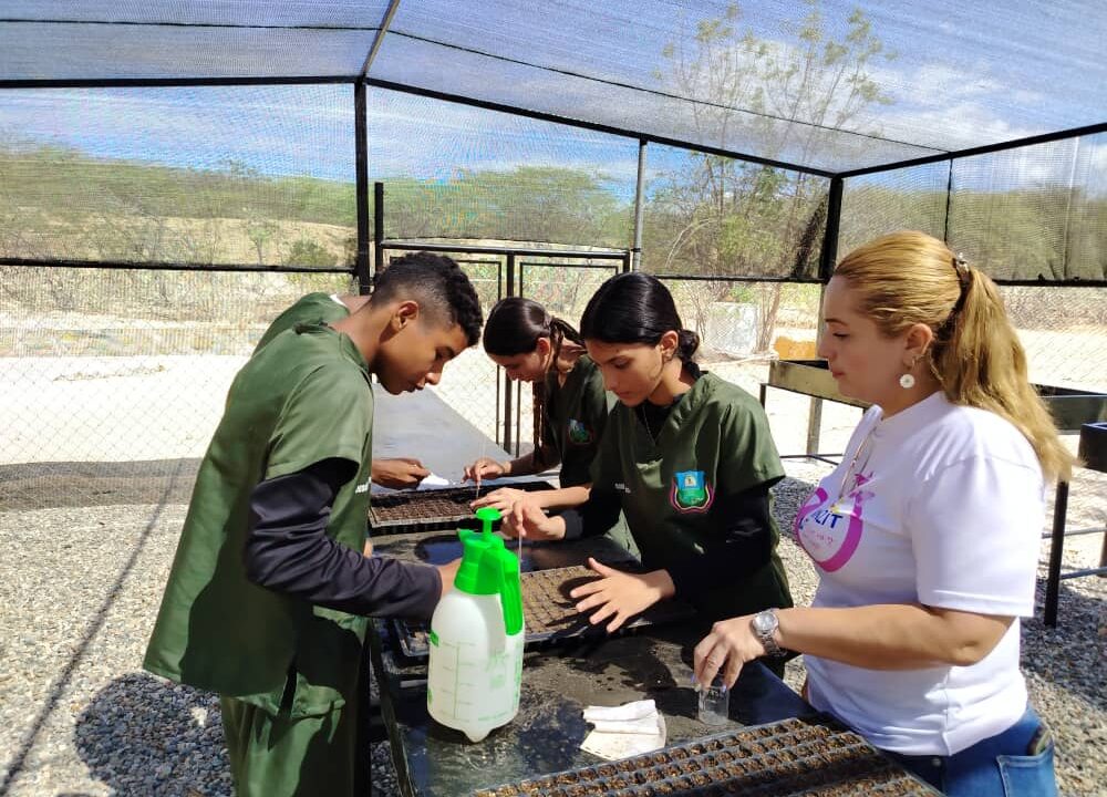 Los investigadores de la coordinación también realizaron prácticas de siembra en bandejas de germinación y explicaron técnicas de riego específicas para semilleros, destacando la importancia del control de la humedad para el éxito de las plántulas.