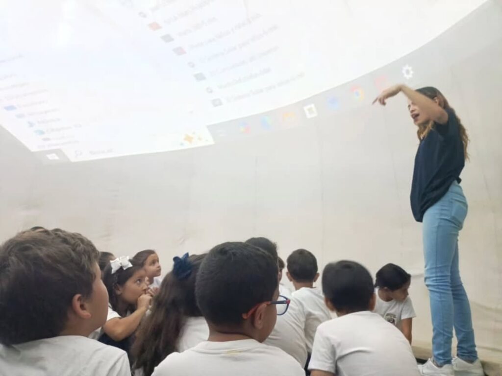 En la estación de astronomía, los estudiantes simularon el fascinante viaje por el planetario, explorando el sistema solar, descubriendo las características de cada planeta, su composición, estructura y los movimientos de rotación y traslación que rigen el cosmos.
