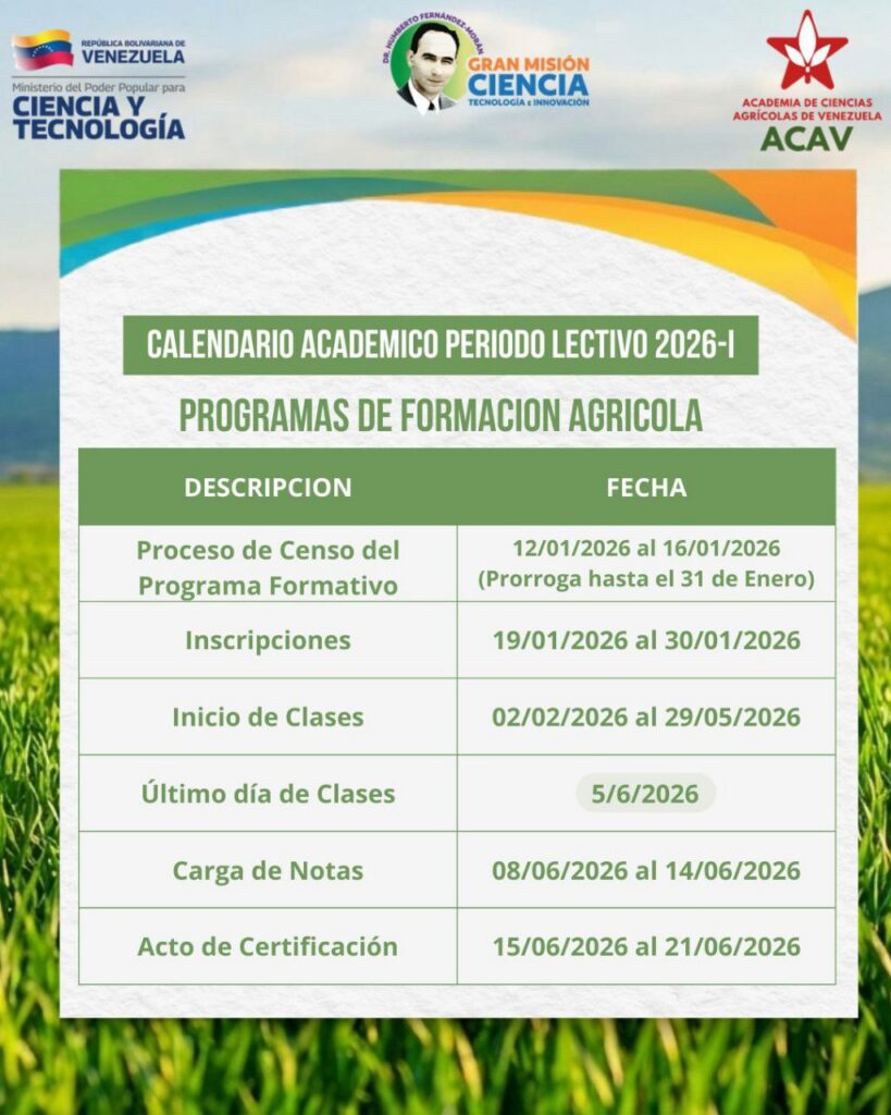 (Caracas, 29 de enero de 2026).- La Academia de Ciencias Agrícolas de Venezuela (ACAV) impulsa la excelencia académica y pone a disposición los diplomados enfocados en áreas estratégicas sobre este sector.