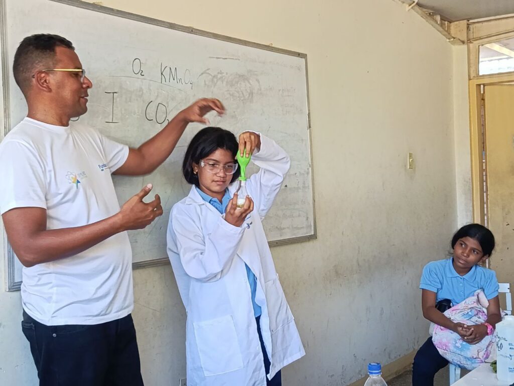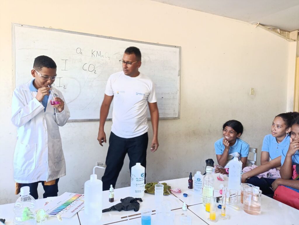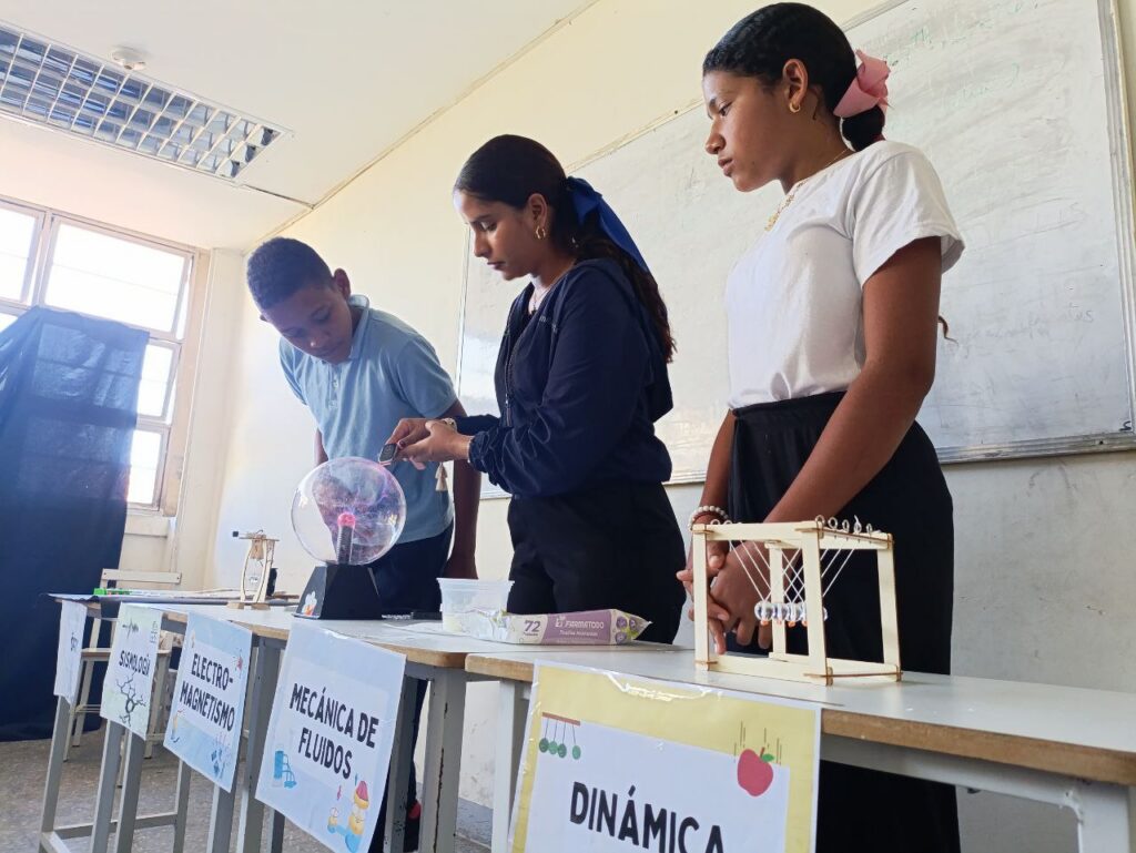 Durante la actividad los estudiantes de educación media general realizaron experimentos científicos y actividades prácticas utilizando las ciencias básicas que abarcan la química, física, matemáticas, la astronomía, el ecosocialismo, la producción para la salud.