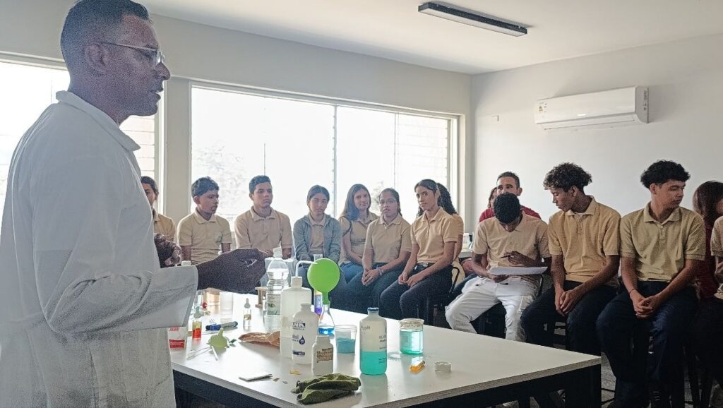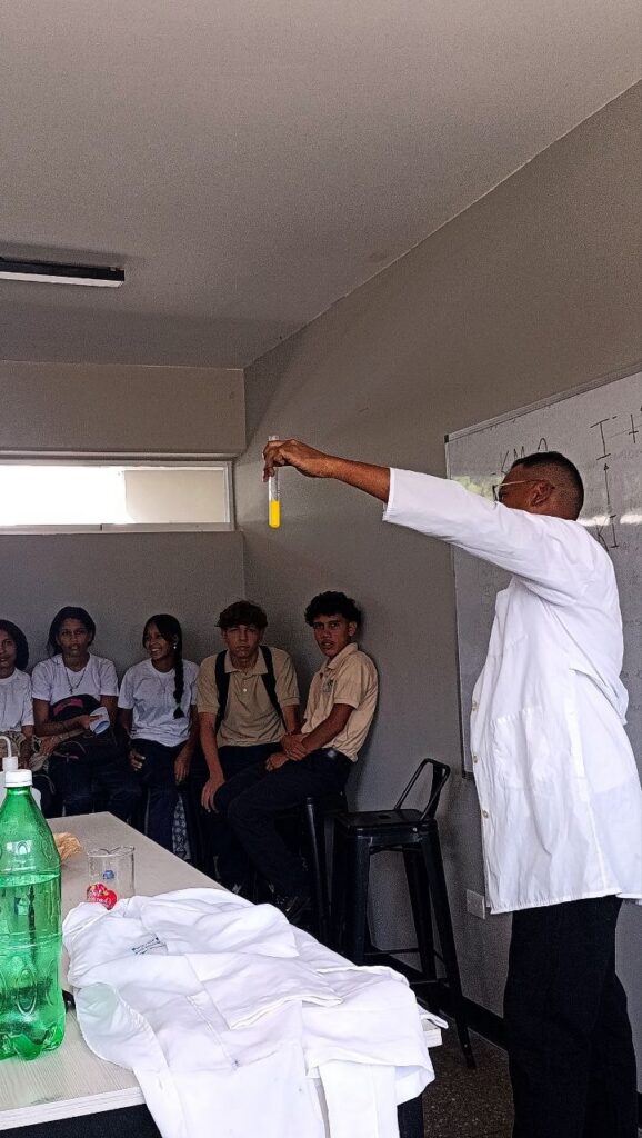 La jornada se dividió en dos estaciones de aprendizaje dinámico: Química divertida, donde los estudiantes analizaron el pH de sustancias cotidianas para comprender la acidez y basicidad. Asimismo, exploraron la química de la pirotecnia, aprendiendo sobre reacciones de oxidación y espectros de emisión de luz.