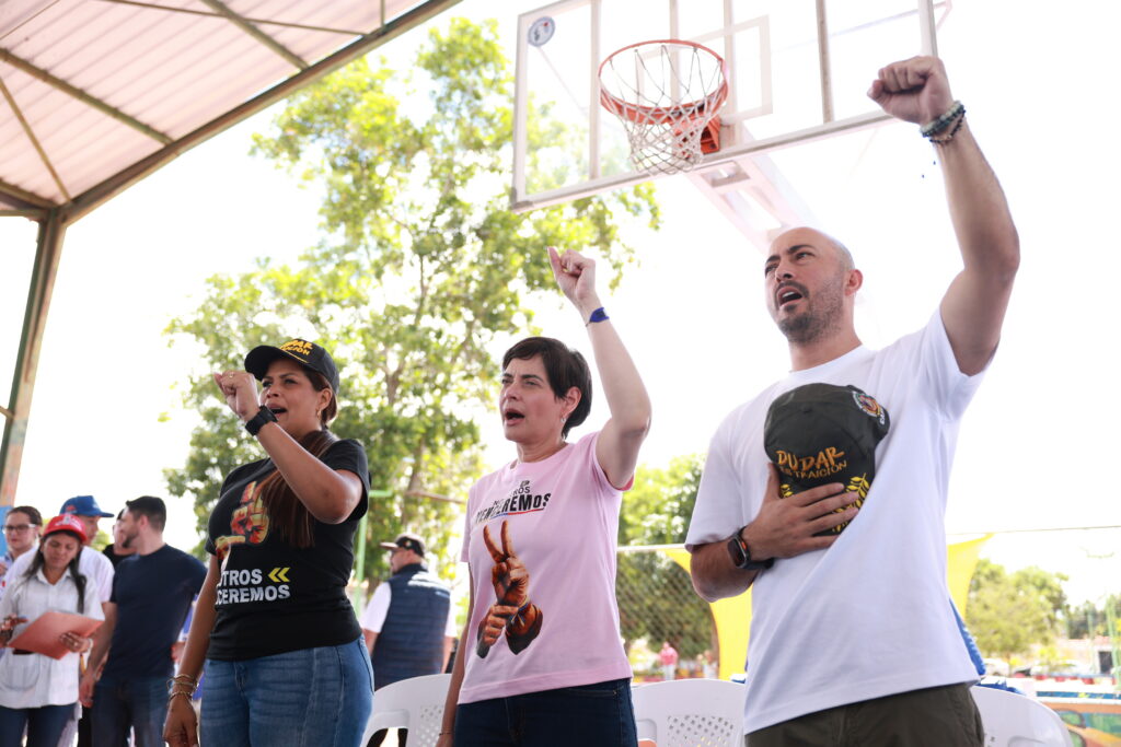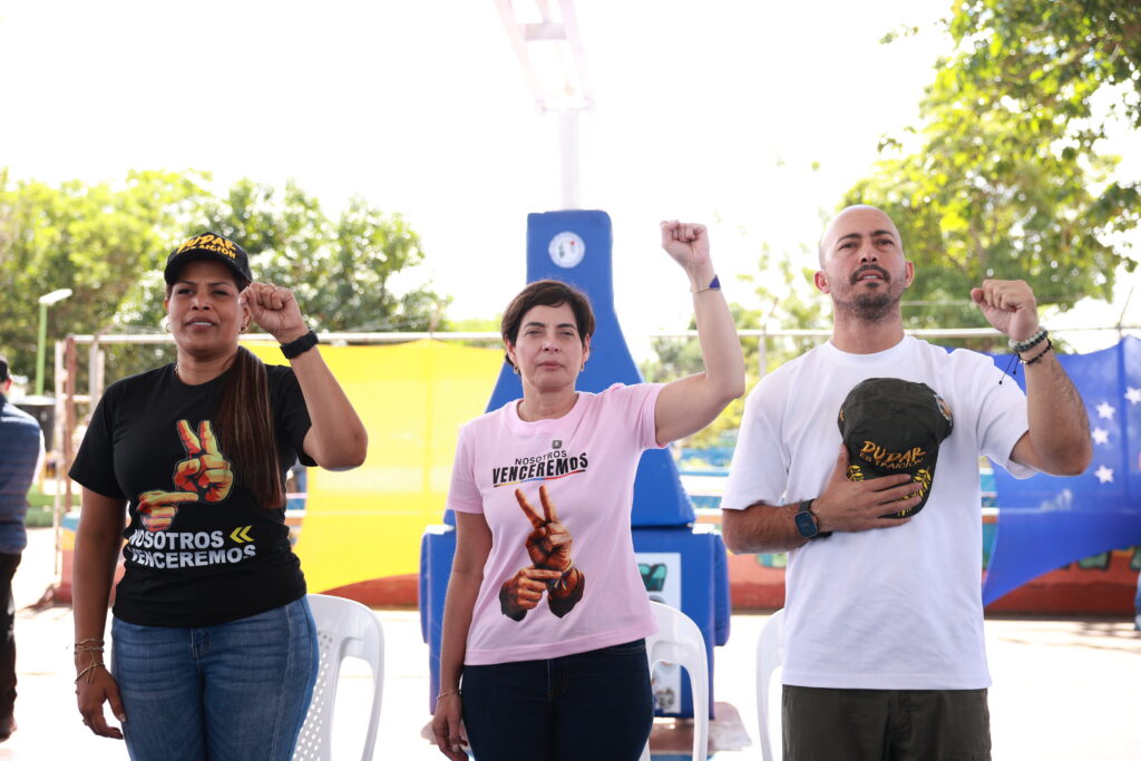 «Junto a nuestra gobernadora del estado Bolívar, Yulisbeth García, hemos vivido una jornada extraordinaria de agitación política y amor patrio en asamblea con los aguerridos comandos populares de Unare, desde la Cancha Los Delfines en Caroní», manifestó.