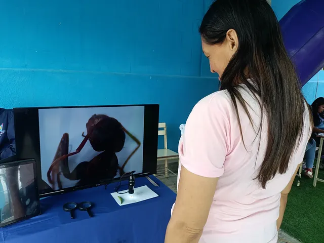 Durante la jornada, se realizaron demostraciones interactivas con kits de robótica, observación astronómica con telescopio y exploración del mundo microscópico a través de la lupa electrónica.
