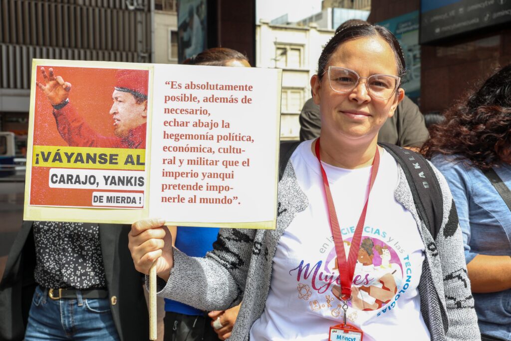 “Amanecimos en pie de lucha. Nosotras las mujeres somos parte de esta patria y queremos estar presentes en este momento que la historia no los exige. Queremos mandar este mensaje a nuestro presidente Nicolás Maduro, las mujeres de las ciencias vamos a estar aquí resteadas en la defensa de esta Revolución”, dijo.