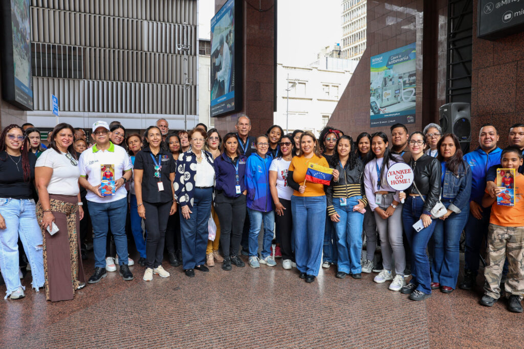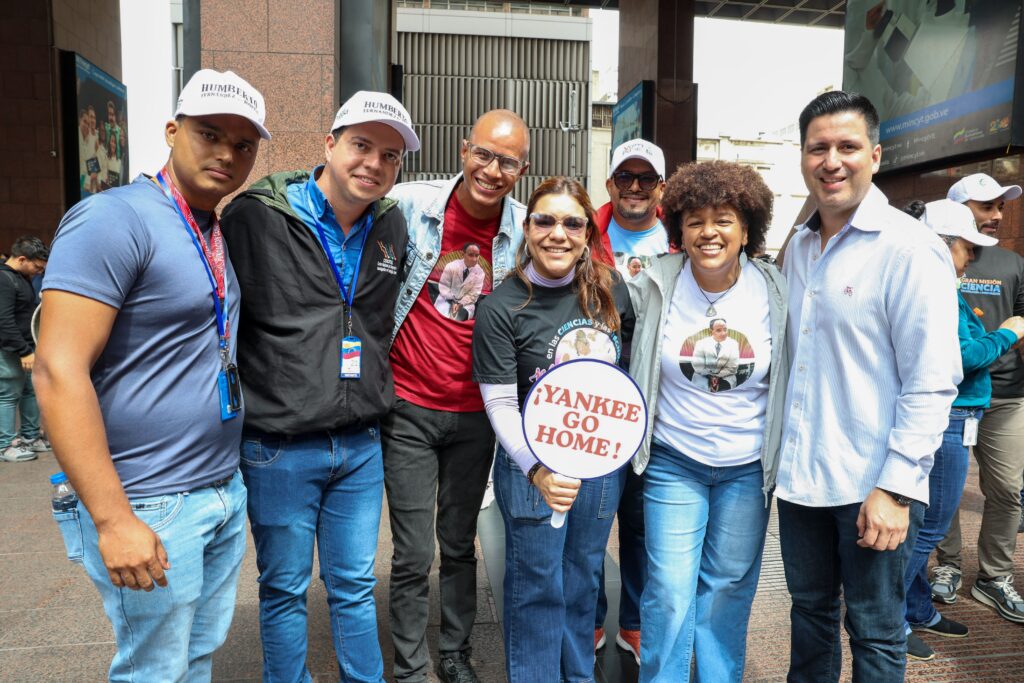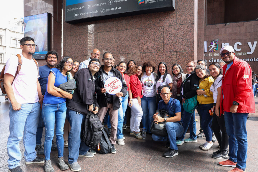 Este martes, reunidos en la Plaza Pueblos y Saberes ubicada en la Torre del Ministerio del Poder Popular para Ciencia y Tecnología, se realizó una muestra de apoyo al presidente Nicolás Maduro Moros y en rechazo a la declaración de Donald Trump sobre un bloqueo naval y petrolero contra Venezuela.