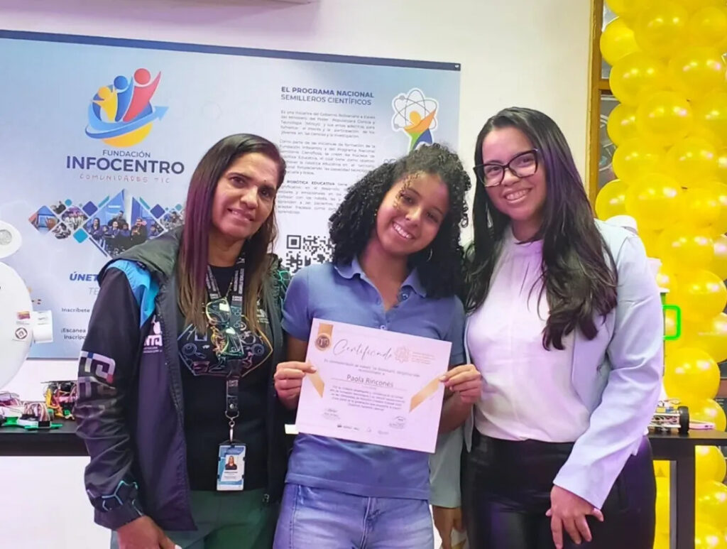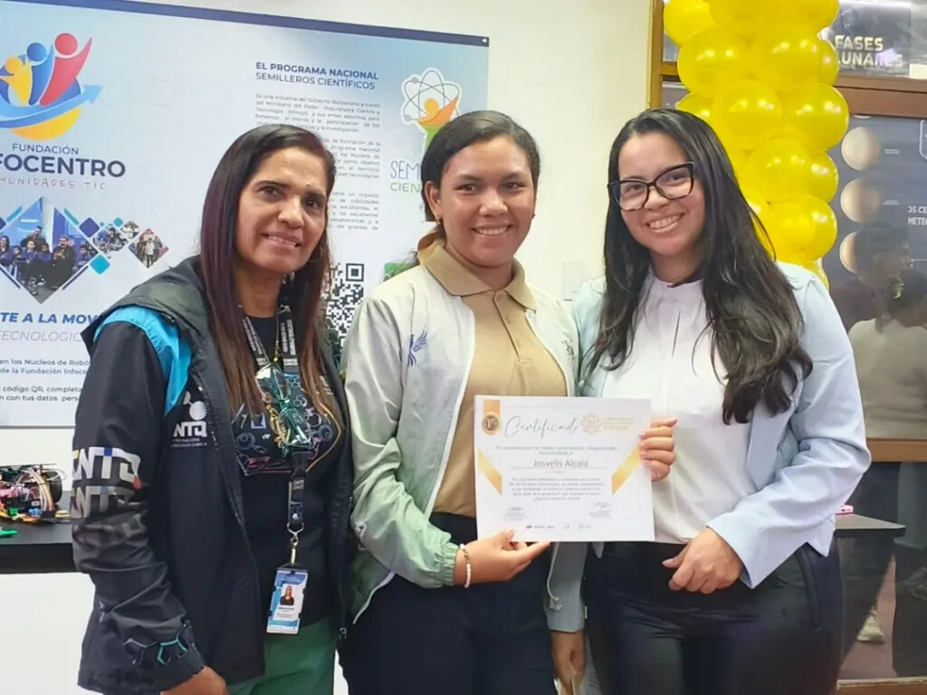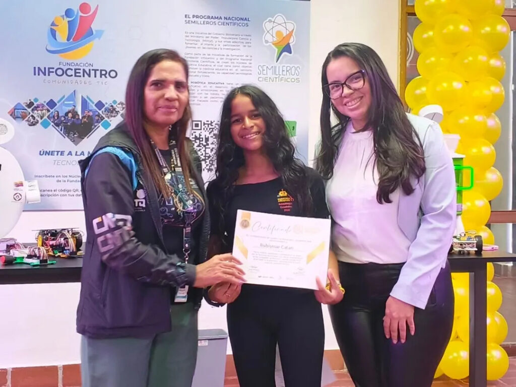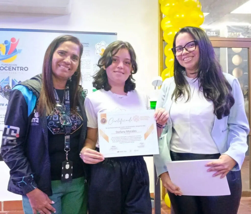 Los reconocimientos en los ámbitos de física, química y robótica fueron entregados por la gerente de Formación del CNTQ, Yasmira Martínez, junto a la coordinadora del CDEC, Isbelys Rodríguez.