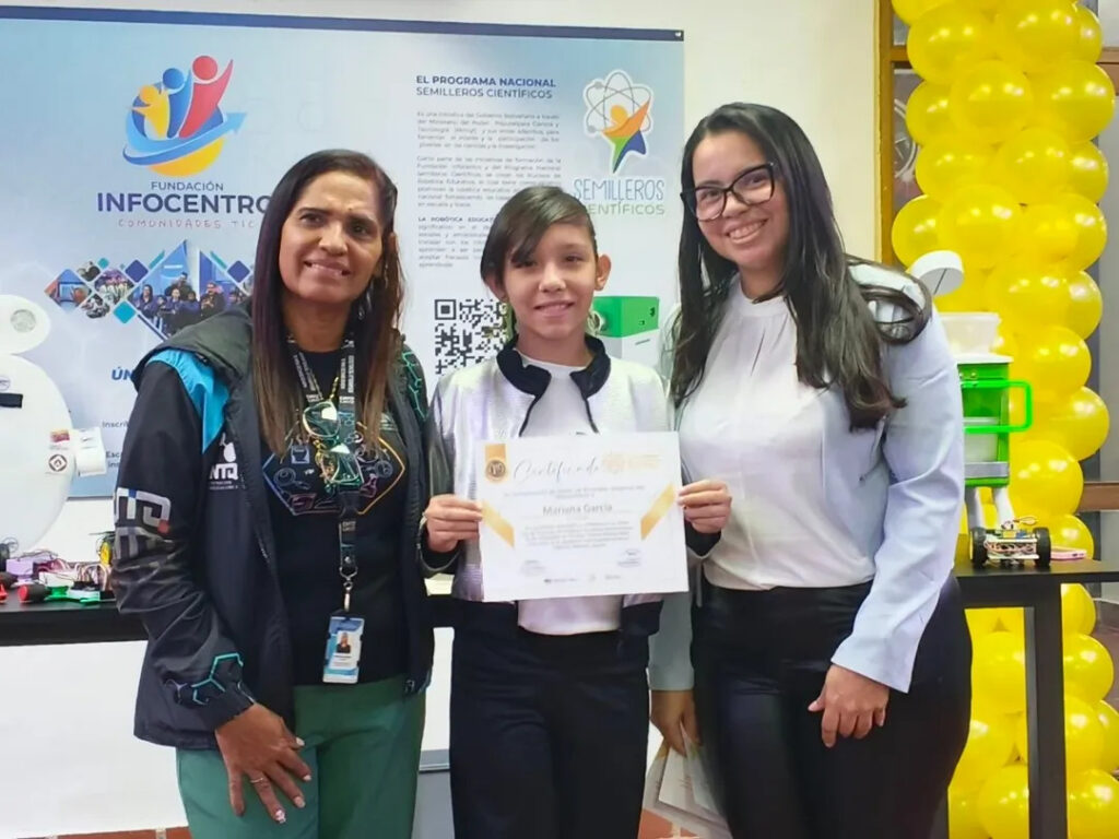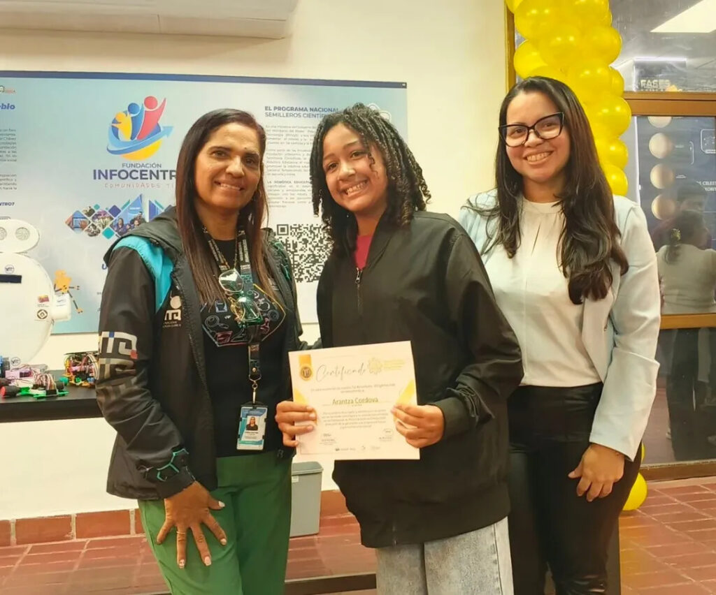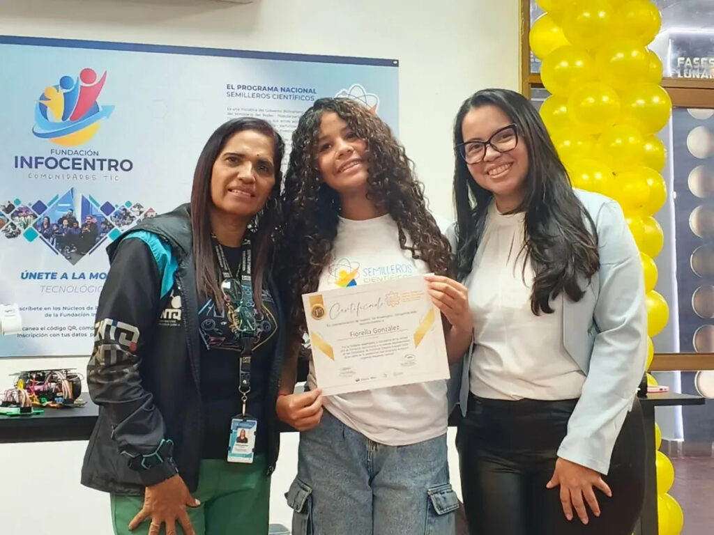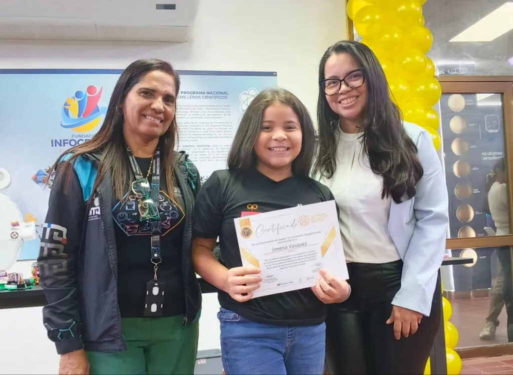 Los reconocimientos en los ámbitos de física, química y robótica fueron entregados por la gerente de Formación del CNTQ, Yasmira Martínez, junto a la coordinadora del CDEC, Isbelys Rodríguez.